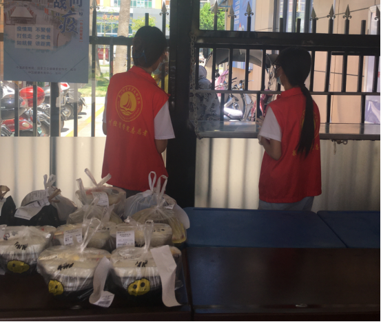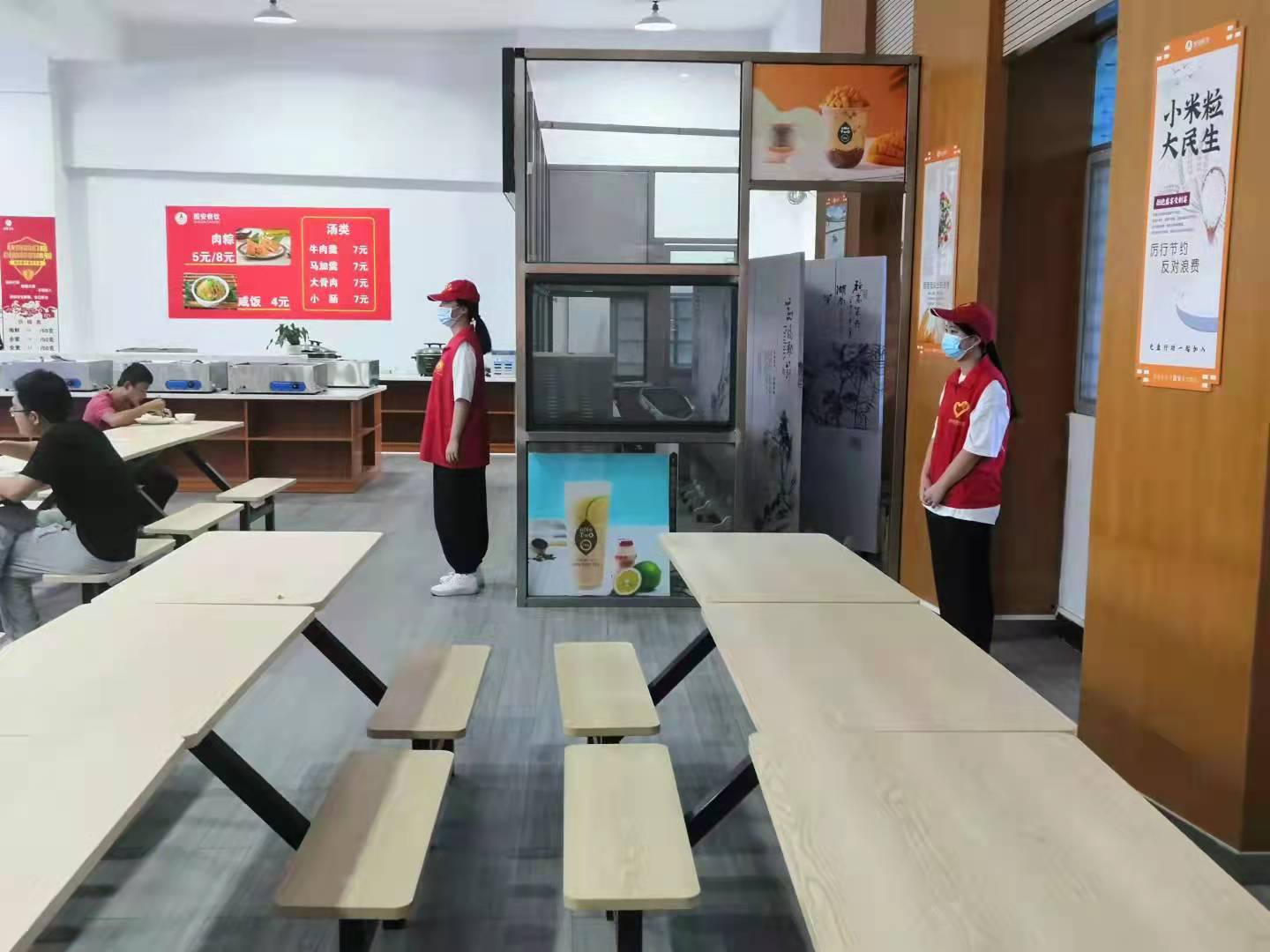 “食堂防疫志愿组”主要负责劝导学生打餐要间隔一米,间隔就坐,餐前要洗手,提高疫情防护意识。
