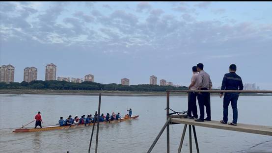 随后,一行人步行至笋江边,观看了龙舟社团水上训练,社团导师、鲤城区龙舟文化促进会负责人刘浩淼详细介绍了龙舟队的日常训练情况。
