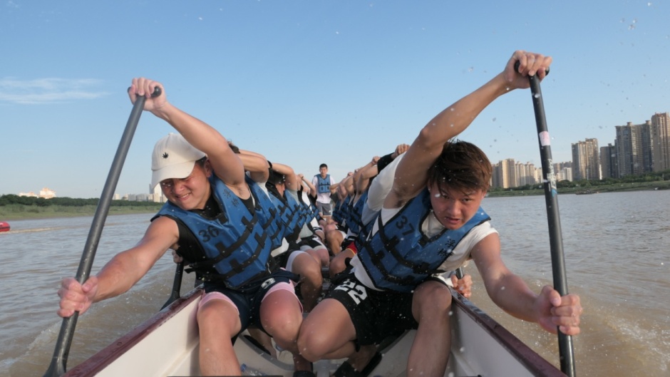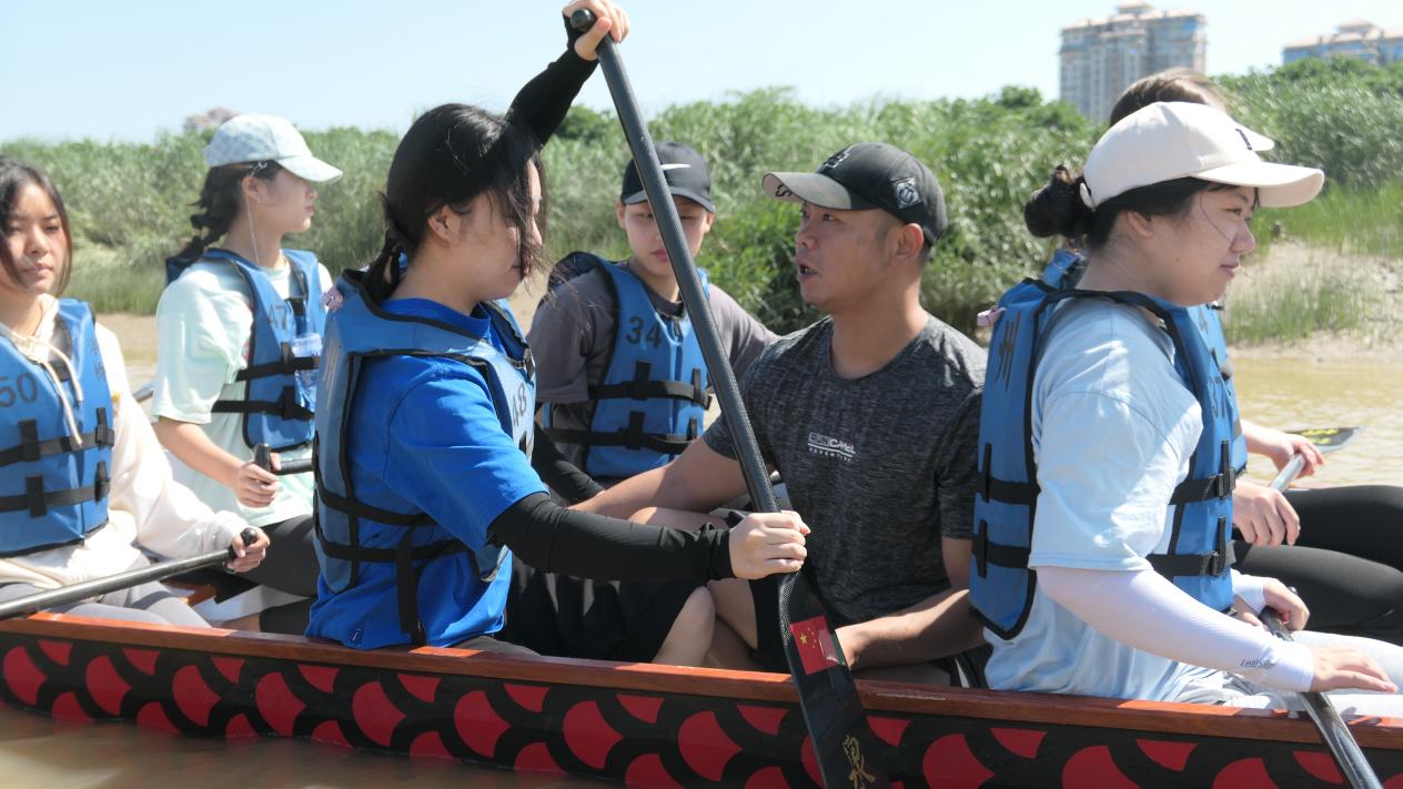 5月19日,学院党委副书记陈金通现场调研我院龙舟社团日常训练情况,院团委相关人员陪同调研。