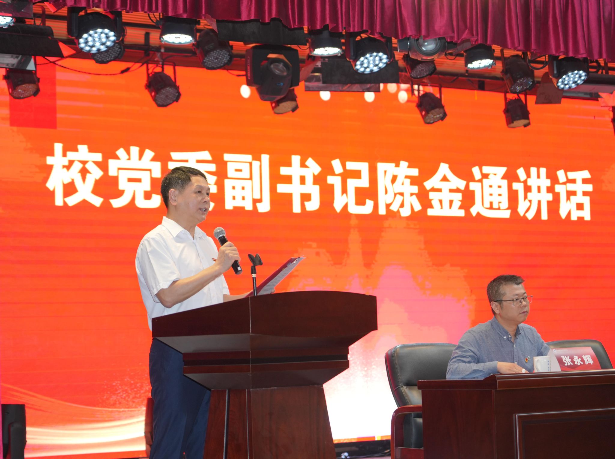 校党委副书记陈金通代表学校党委向受表彰的先进集体和个人表示祝贺。希望青年朋友们要坚定理想信念,胸怀报国之志,坚定不移听党话、跟党走,牢记“将小我融入大我”的殷殷嘱托;要锤炼干事之能,恪守立身之本,紧跟时代步伐,做苦练本领、能力过硬的青年先锋,以创新创造贡献国家;要勇担时代使命,绽放青春风彩,以奋斗、奋力、奋发、奋勇的姿态塑造精神力量,做走在时代前列的奋进者、开拓者、奉献者。