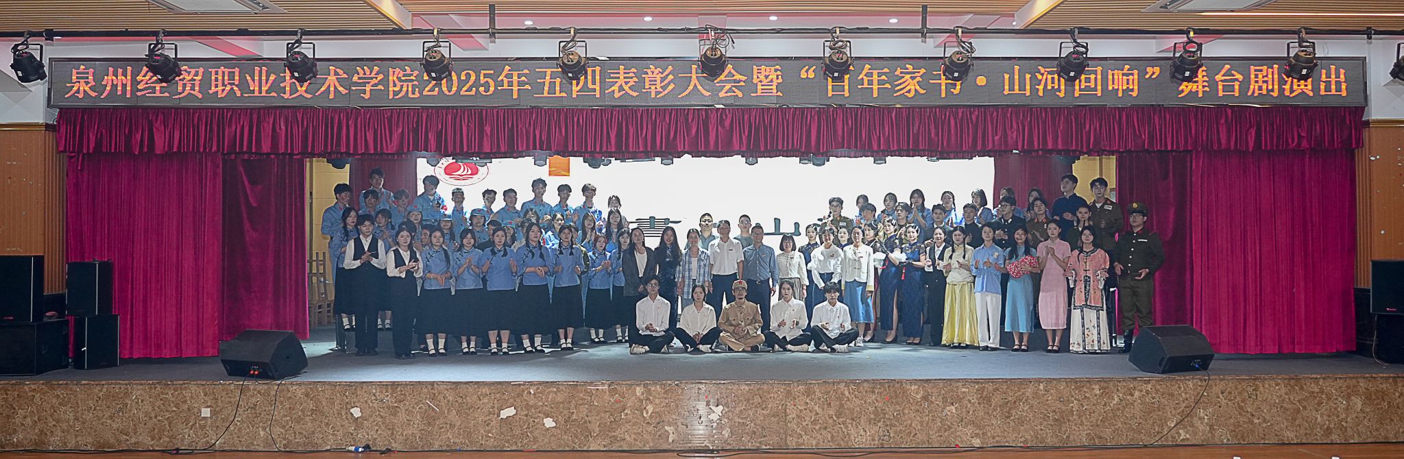 4月29日下午,我校召开2025年五四表彰大会暨“百年家书·山河回响”舞台剧演出,校党委副书记陈金通,校团委、学生处负责人,各二级学院学生工作负责人、团务负责人,以及获奖师生代表参加大会。