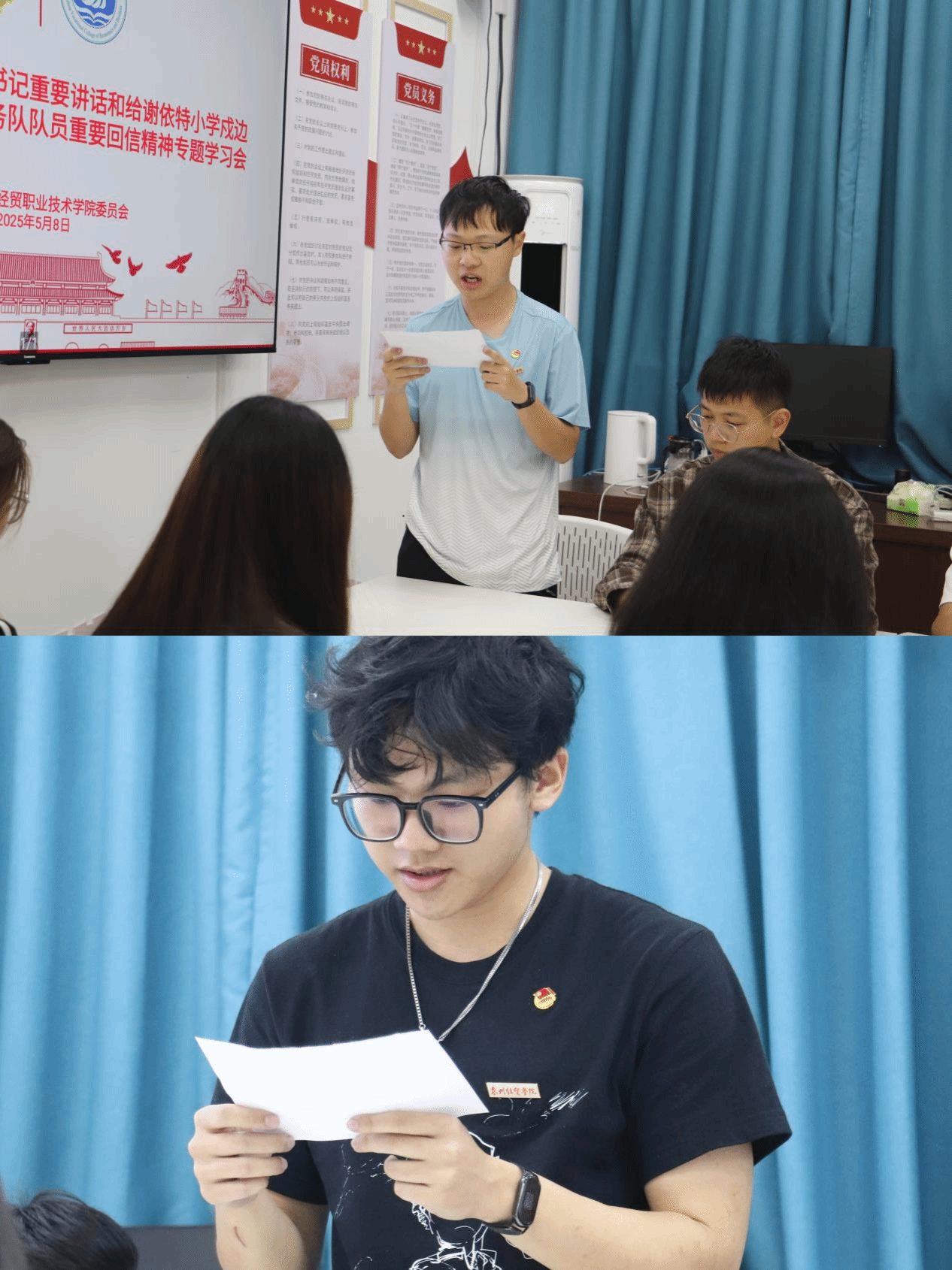 校团委宣传部干事洪翔锐:学习习近平总书记给戍边支教志愿者的回信和《求是》杂志重要文章,我深刻认识到,新时代青年既要胸怀“国之大者”,更要用专业所长服务社会。边疆支教志愿者将教育理想扎根高原,而作为移动互联专业学子,我们同样能在科技浪潮中践行“挺膺担当”。未来,我将以“自找苦吃”的劲头锤炼专业技能,既关注前沿技术突破,更聚焦社会需求痛点。在通信基站维护中守护“信号边疆”,在智慧城市建设中注入青年智慧,以实际行动回应习近平总书记“到祖国需要处发光”的号召,让移动互联的星光点亮中国式现代化新征程!