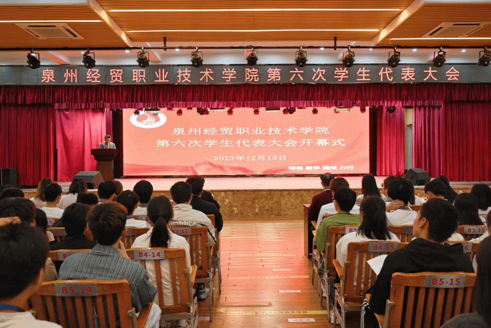 2023年12月15日,学院在大礼堂召开第六次学生代表大会,136名学代会正式代表参加大会。